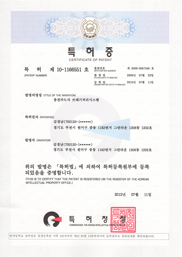 홈 > 회사소개 > 특허/인증서